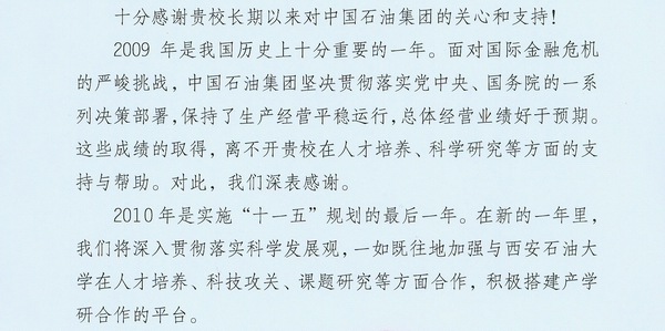 盘点2009企校合作 中石油致函学校表示感谢