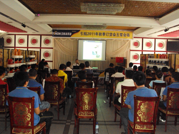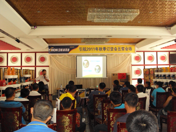 2011年8月14日五常地区迎来了首界引航高端润滑油秋季订货会,本次订货会由引航石化与五常引航营销中心共同举办。市内及各乡镇近近百家新老客户齐聚一堂,引航石化销售总监张浩亲临会场,主持并带来了精彩的引航发展方向及润滑油未来趋势演讲,随后黑龙江省销售经理刘敏向现场来宾详细介绍了引航高端产品和冰驰产品的技术优势,会场气氛热烈,来宾们纷纷就自己关心的问题提问互动。 引航五常营销中心成立半年来,经过梁经理与全体销售人员的不懈努力,创造了良好销售佳绩并赢得了客户的广泛赞誉。虽然本届会议为五常地区首次产品订货会,但会议取得了巨大的成功,单笔订单就实现近10万元销售金额,参会来宾不但订购了几十万元的引航产品,而且全面了解了引航未来的发展和品牌定位,并对引航高端润滑油产品销售充满信心。