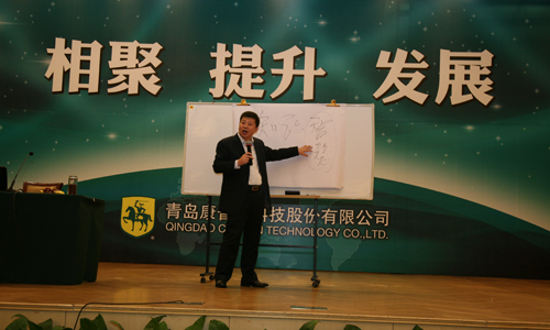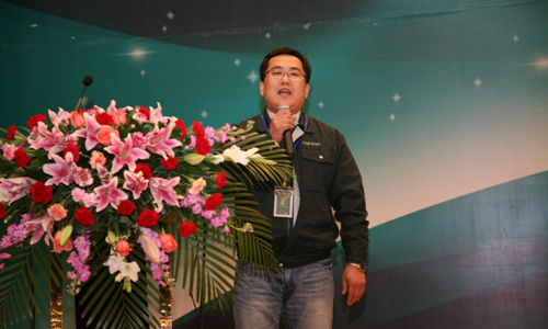 焦广宇副总经理讲话 随后,焦广宇副总经理对2011年康普顿车用油和工业油的销售进行了回顾。2011年,又有近百家经销商加入到康普顿大家庭,使康普顿的销售服务网络更加健全。2011年,康普顿纳米陶瓷机油、汽车油SL\CH-4以上级别和合成工业油产品实现了大幅度的增长。焦总对2011年优异成绩的取得进行了分析,对存在的不足进行了总结,并公布了2012年销售目标及市场策略和销售政策。最后,焦总号召公司所有销售人员以及所有经销商朋友为各自事业的发展积极进行全方面的提升,并以“同舟共济破风浪,齐心协力创辉煌 ”与大家共勉。