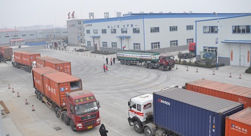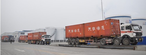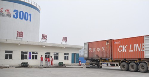 ![]() (图一) 满载GS基础油的货柜车抵达东风油品集团许昌生产基地