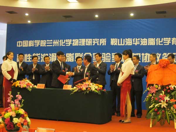 中科院兰州化学物理研究所与鞍山海华优质化学有限公司签署框架协议,建立高性能润滑油脂联合实验室。 刘勇 摄