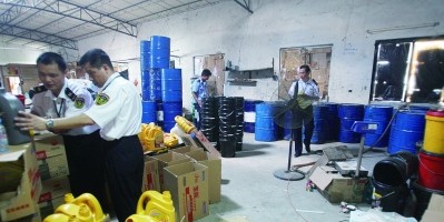 本月12日,广东省质监局联合多级工商、公安等部门的100多名执法人员雷霆出击,查处了一宗涉嫌危害我省工业体系和社会公共安全多年的特大制售假冒伪劣润滑油类产品案,当场查获涉嫌问题产品1000多吨,各种涉嫌用于造假设备、油桶油罐等一大批,总价值超过1000万元。