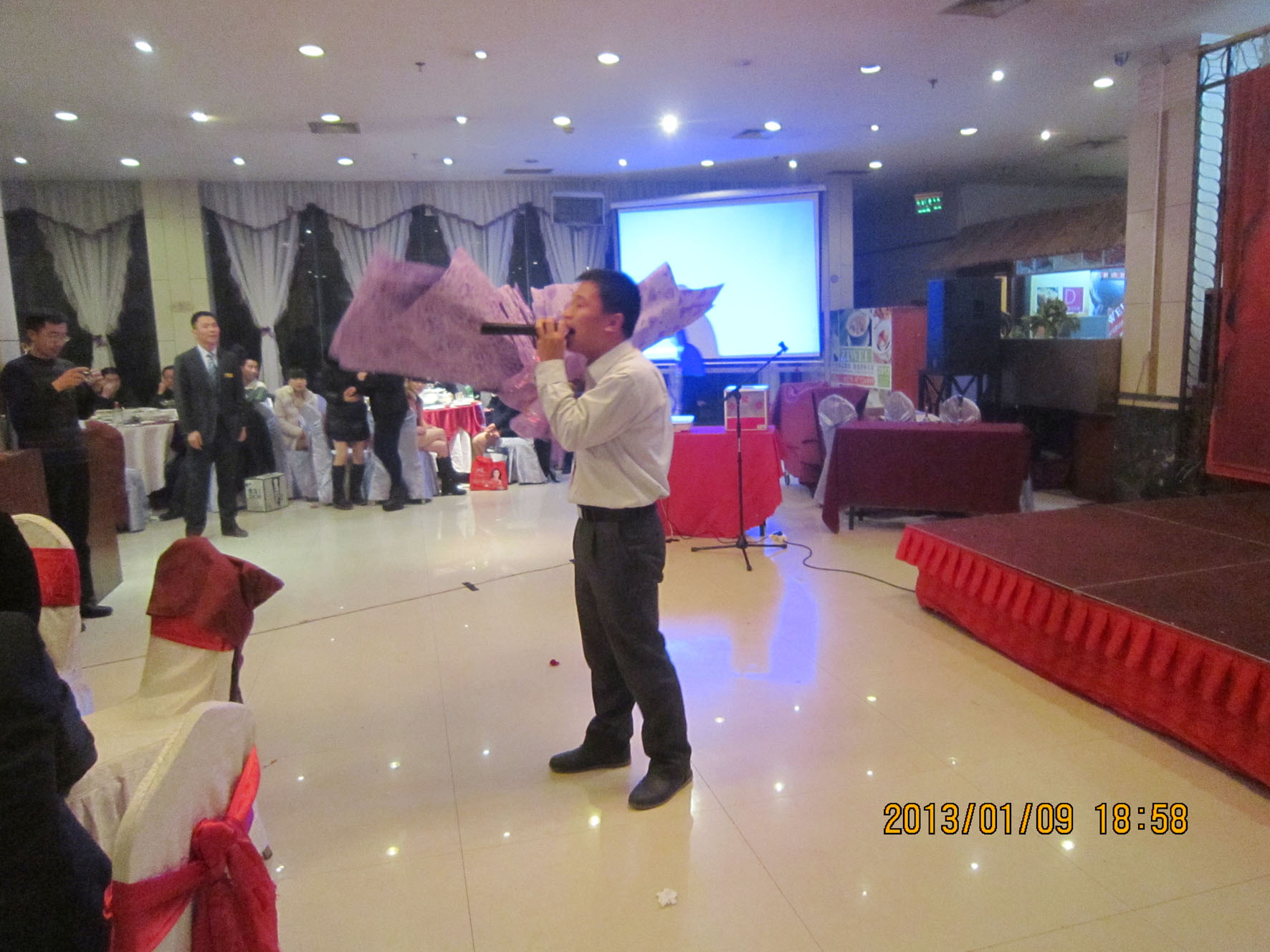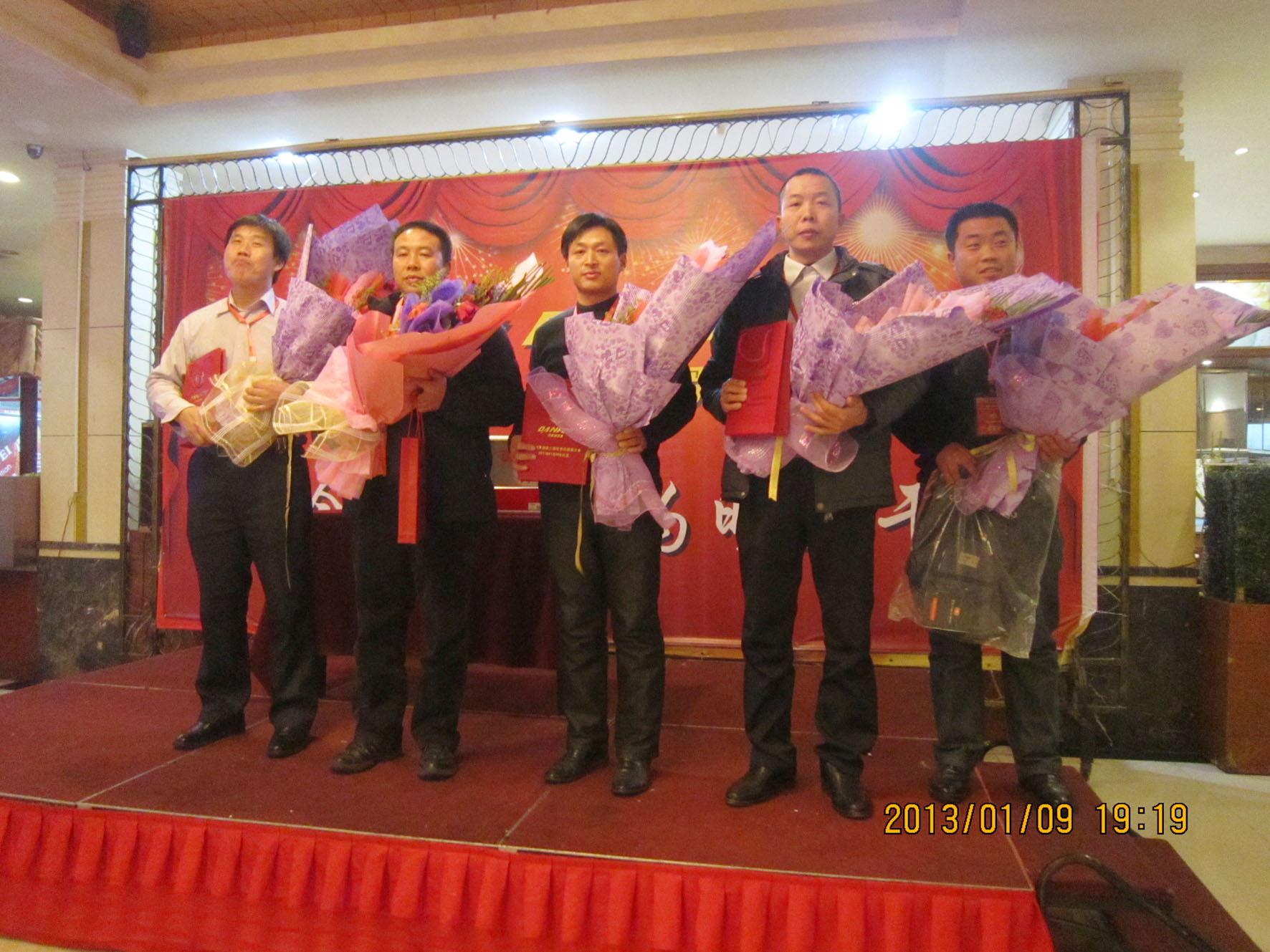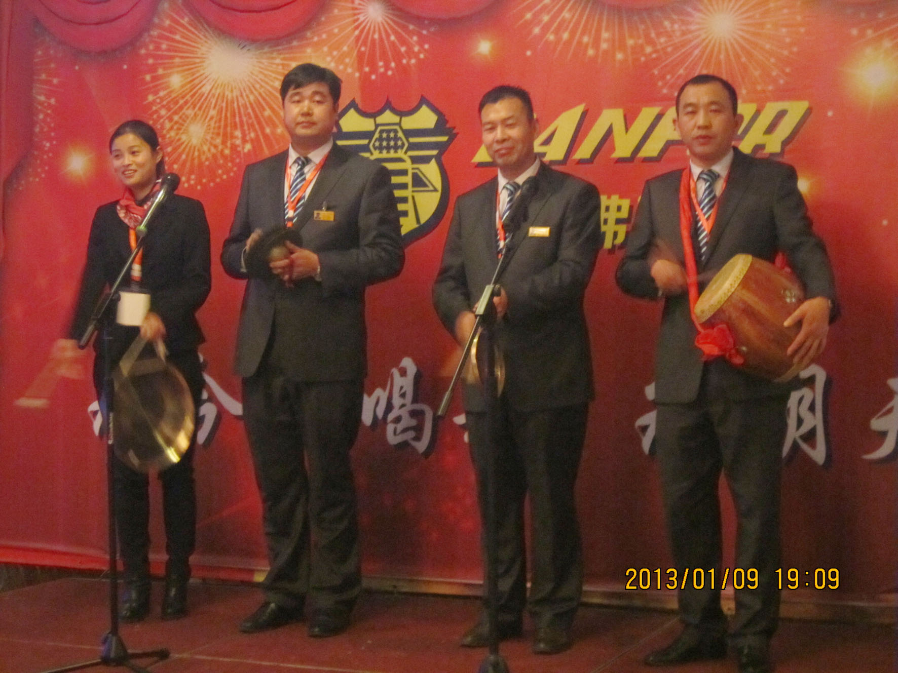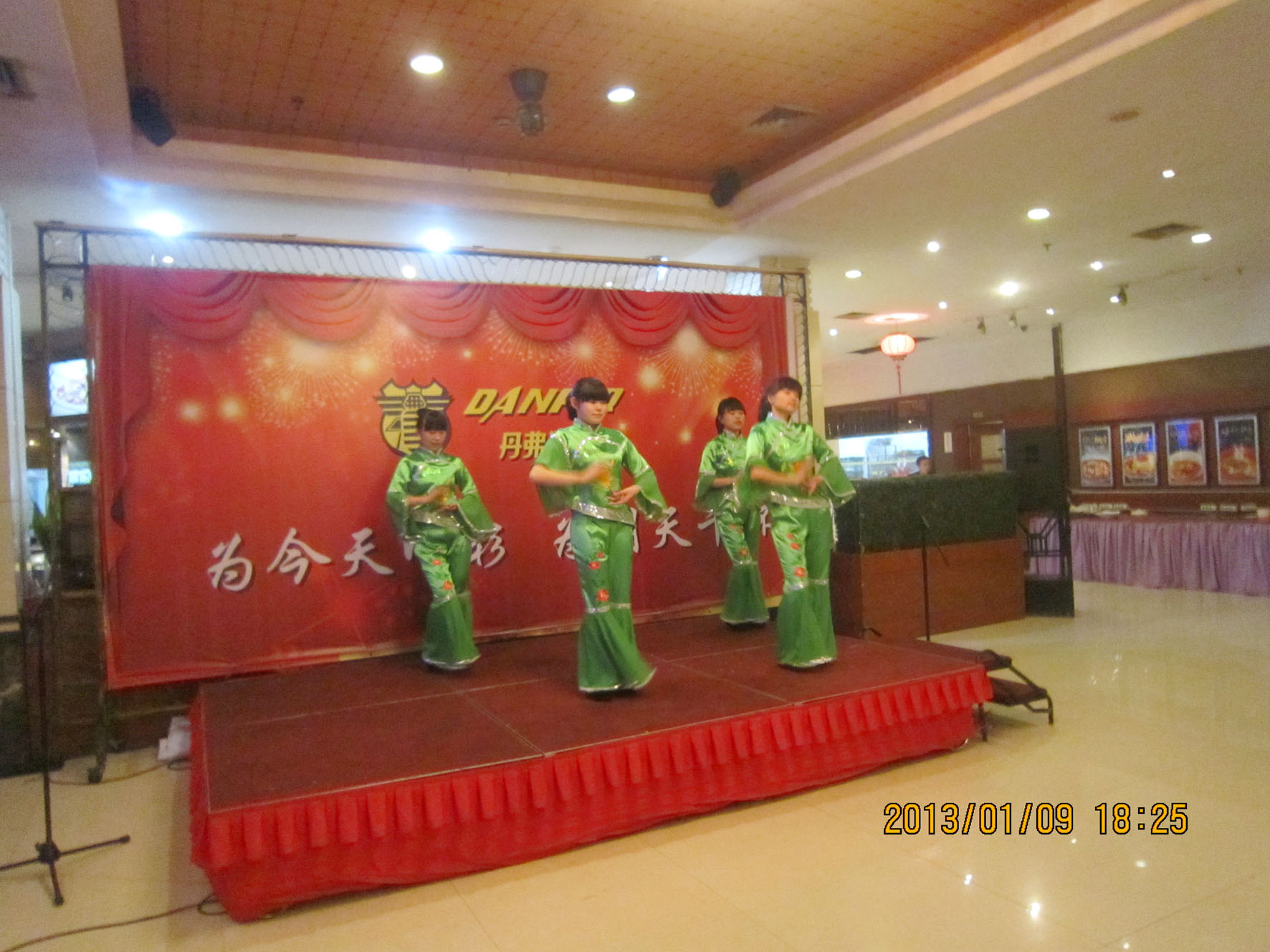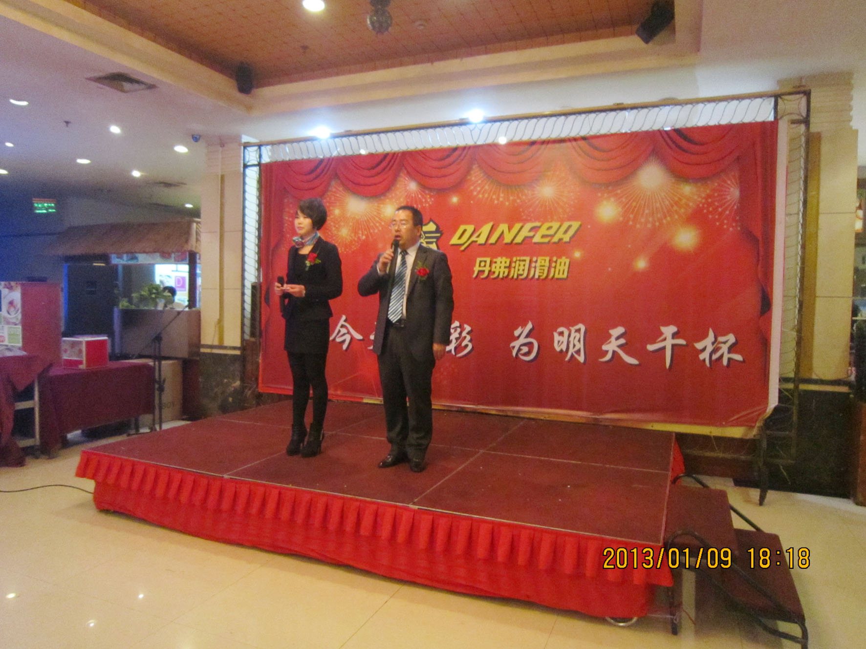 (车间参观) 组织文艺晚会 1月9日晚上6时,永康紫薇花园宾馆一楼餐厅,宾朋满座,歌声飞扬。以“为今天喝彩,为明天干杯”为主题的丹弗文艺晚会,在市场部全体营销人员的大合唱《步步高》中拉开序幕。雄壮激越的歌声,表达了丹弗人“付出总有回报”的决心和“要做就做最好”的信心,以及在新的一年步步登高的美好愿望。 紧接着,是客户部和财务部陈洁琅、徐静、朱璐、蓝佳表演的浙江民间舞蹈《采茶舞》,婀娜的舞姿,动人的旋律,让观众放下酒杯欣赏、喝彩,一饱眼福,台下响起阵阵掌声。市场部周威、苏梦飞表演的相声《新闻晚知道》,令人忍俊不禁,硬是让他们过了一把当新闻播音员的瘾。在热烈的气氛中,许多经销商和营销人员登台亮相,演唱了一首经典歌曲。总经理王安文也禁不住内心的激动,献上一曲曾经流行动听的《新鸳鸯蝴蝶梦》、营销中心王伟总监也上台高歌一曲,全场掌声、喝彩声不停响起。陈洁琅、曾中英、吕霞、罗瑞峰、刘和祥等10人表演的韩国神曲《江南Style》,更是火爆、疯狂,将晚会推向高潮…… 三句半、独唱、歌舞、诗歌朗诵,一个个员工自编自演自导的精彩节目,赢得了雷鸣般的掌声。节目之间,同时还安排了五个级别的抽奖活动,更增添了晚会的热闹、欢乐气氛,让经销商和员工共同度过了一个难忘的夜晚。