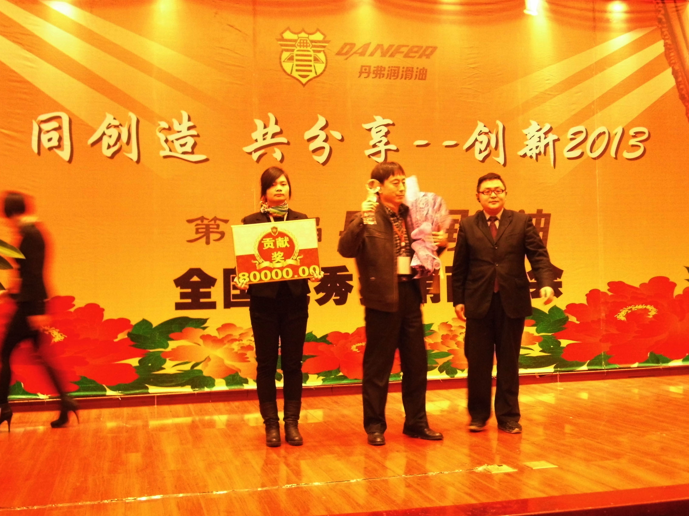 (王安文为获奖经销商颁奖) 公司的发展离不开广大经销商的辛勤付出和配合,在此表示衷心地感谢!”王安文激动地说。 会议结束后,经销商们参观了丹弗润滑油生产车间,对先进的灌装流水线表示赞叹,对丹弗的明天充满信心。