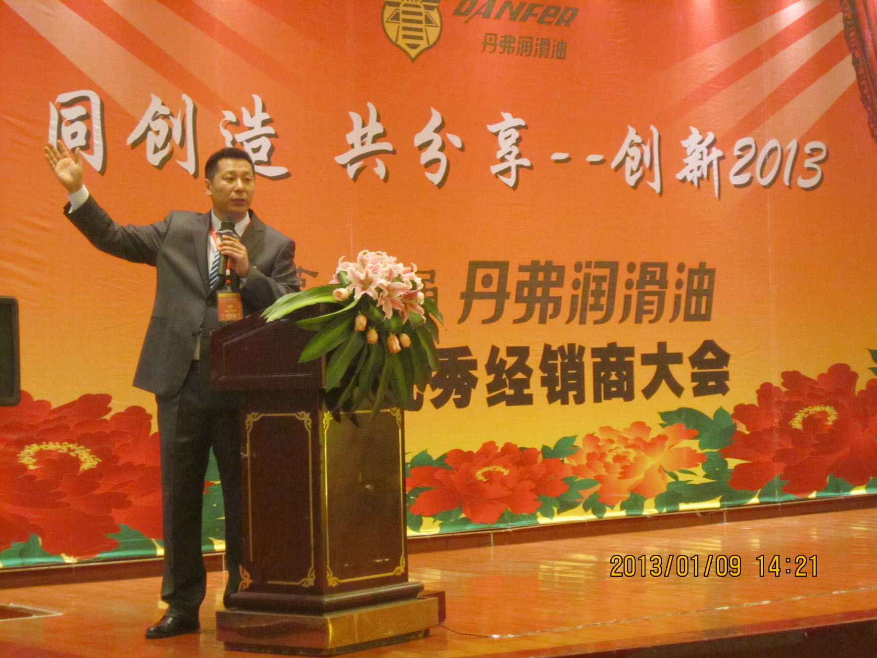 (2013年新销售团队亮相) 北方市场部经理宋永丰对换油中心模式作了介绍。王岩龙等5位优秀经销商代表作了热情洋溢的发言,纷纷表示在新的一年里再创佳绩,绝不辜负公司的期望和大力支持。