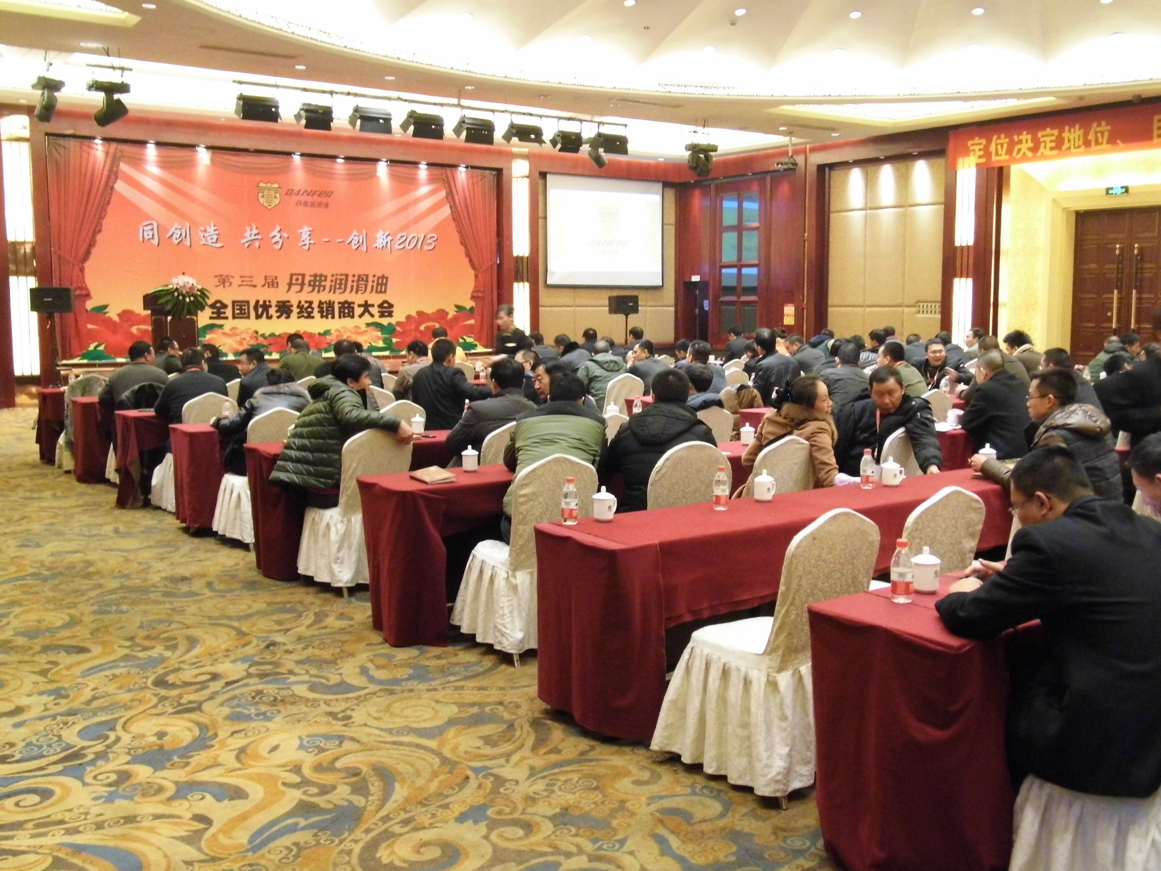 今年冬天特别寒冷,雨雪交加连续不断,但王力集团却涌动着温暖、掌声和笑声。1月9日至10日,王力集团旗下的丹弗润滑油公司召开了第三届全国优秀经销商表彰大会,并组织了精彩的文艺晚会,开展了泡温泉活动。 召开第三届全国优秀经销商表彰大会() 1月9日9时,永康紫薇花园宾馆三楼会议室,灯火辉煌,暖意融融。丹弗润滑油第三届全国优秀经销商表彰大会在此隆重召开。集团董事长王跃斌出席会议并发表重要讲话,近100名优秀经销商代表和华爵集团执行总裁张涛、集团营销总监胡伟等王力和华爵集团领导、丹弗公司王安文总经理、营销总监王伟等全体管理和营销人员参加了会议,会议由电视台著名主持人主持。