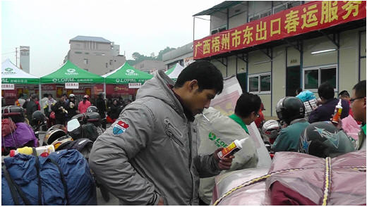 昨天,龙蟠从南京紧急调运广西梧州市的3E摩托车轮胎自补液已全部发放完毕,今天下午,第二批产品刚到服务点,就又被返乡摩托大军们领取一空,现场的旅客听说用这款修补液就能够自行补胎,都想为自己备上一份。 3E轮胎自补液这款产品是3ECARE在日臻完善的汽车轮胎修补液的基础上研发的针对摩托车、电动车等小型车的轮胎自补液。它采用特殊的高分子胶体和独特的添加因子精细合成,可预防轮胎漏气或迅速修复漏气轮胎,具有预防性和即时性合一的特点,瞬间修补6毫米左右的轮胎刺孔,具有一次注入、长久保护的效果。