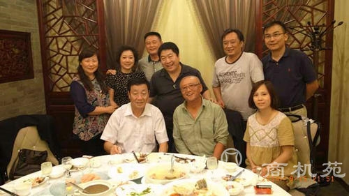 图1:姚董和张总与即将登程的2014快乐中华美国游伙伴们在饯行晚宴上合影。