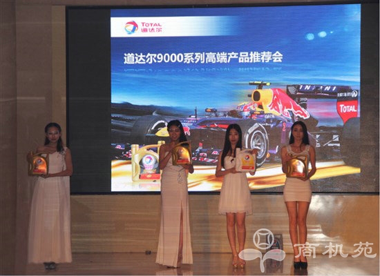 推介会上,道达尔专家先后向参会人员详细介绍了道达尔公司的概况以及道达尔9000系列产品的优异性能。为了向现场经销商和消费者展示产品,道达尔还特意请到美女车模前来助阵。几位性感靓丽的美女车模手持道达尔赛车级润滑油产品站在台上,婷婷玉立,再加上他们迷人的笑容与姿态,吸引了在场所有人的眼球,为推介会增添无限风光。
