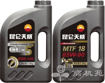 中国当前的路况和车况造成重型货车在行驶中出现了很多问题,而长期以来普遍存在的后桥齿轮油和变速箱油的混用加重了车辆设备的严重损坏。昆仑天威GL-5+高级别齿轮油和MTF18手动变速箱油专为变速箱和后桥齿轮所需油品分开研制,具有更长寿命、更高性价比的绝对优势。