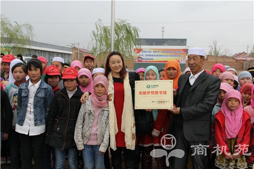 图为龙蟠领导在宁夏捐赠梦想图书馆的现场仪式