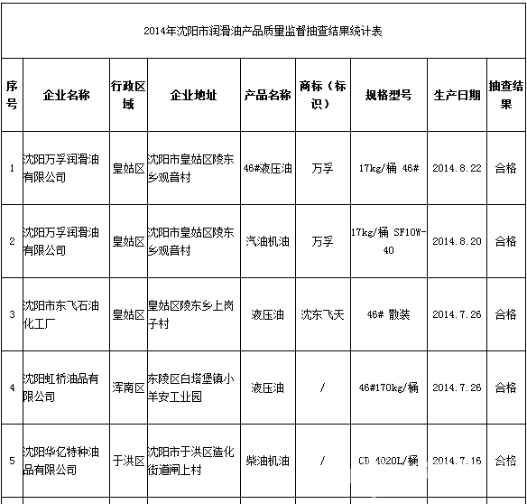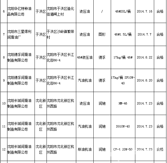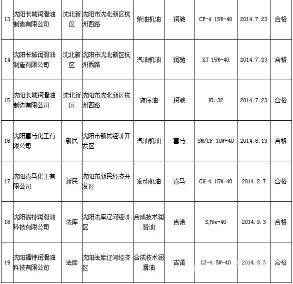 沈阳市质量技术监督局日前公布2014年沈阳市润滑油产品质量监督抽查结果,共监督抽查19批次润滑油产品。经检验,合格19批次,合格率为100%。 本次监督抽查委托沈阳产品质量监督检验院承担检验任务。监督抽查依据《2014年沈阳市润滑油产品质量监督抽查方案》执行,按GB 11118.1-2011《液压油》、GB11121-2006《汽油机油》、11122-2006《柴油机油》和产品明示的质量要求对运动黏度、黏度指数、闪点、倾点、水分、机械杂质、腐蚀试验、泡沫性项目进行了检验。