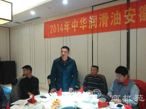2014年11月16日,来自安徽全省各地的 11位中华润滑油经销商齐聚安庆,共同商讨成立了中华润滑油经销商联合会(“中华商会”)安徽分会。中华润滑油董事长姚旗及中华商会执委会副会长王建雄专程到会祝贺。 王总首先代表中华商会全国执委会在会上致辞。他为大家讲解了中华商会组织的性质、宗旨及工作内容,并以中华经销商中最先成立的中华商会闽赣分会为范例,介绍了各地商会组织的工作经验和状况。王总在讲话中着重指出,成立商会的目的,是为了协调市场发展,维护市场秩序,促进品牌成长,从而增进共同利益。