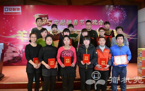 ![]() 领导致辞以后,紧接着,安耐驰公司对2014年公司优秀员工进行了表彰,公司总经理付永红亲自为他们颁发证书以及奖金。在过去一年里,公司成员逐步增加。工厂新厂房投入使用,这些都离不开公司全体成员的耕耘和付出。