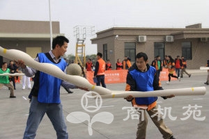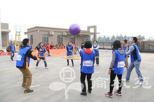 ![]() 齐心协力,队员们如众星捧月一般,共同牵着一只大号“球拍”,3分钟之内,那只队伍颠球最多就可获胜。这是一项不需要英雄,只需要队友的比赛,因为任何一名队友的松懈或者过于卖力都会导致整个团队颠球方向的偏移,而导致整个团队四处奔忙却事倍功半。