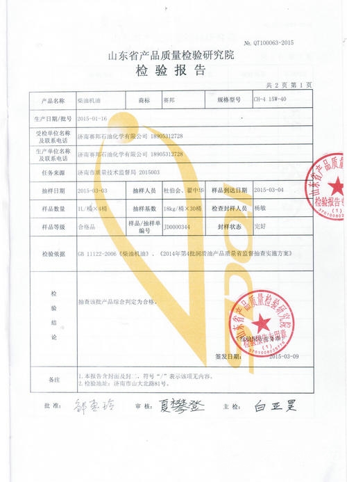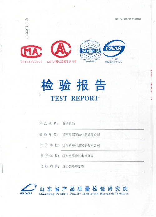 经山东省质检院权威机构的严格复查检验,赛邦石化公司CH-4 15W-40柴油机油产品各项指标均达到国家标准,该产品100%合格。此次油品复查100%合格表明赛邦石化公司产品质量监控完全符合国家质量管理体系的标准及相关要求,具备生产高端润滑油产品的能力。公司董事长刘文友表示,“保证每滴油品的质量是每个赛邦人义不容辞的责任,赛邦矢志成为最受润滑油客户依赖的供应服务企业,竭力建设一流润滑油企业!生产出让客户放心、用户满意的高端润滑油!”