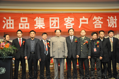 2010年东风油品集团答谢会到会嘉宾合影 2010年东风油品集团答谢会上特邀嘉宾毛泽东扮演着东方子 本刊获悉,此次“东风油品集团答谢会”的举办受到了当地政府、金融机构、新闻媒体及各界人士的广泛关注,应邀出席本次会议的领导及嘉宾有许昌市市委、市政府领导、东城区管委会领导、光大银行代表、中信银行河南省分行代表、兴业银行河南省分行代表、浦发银行河南省分行代表、中国银行许昌分行代表、农业银行代表、许昌银行代表、魏都商行代表;出席本次活动的公司领导有孙锦玉、梁冰、陈宾等;参加本次盛会的新闻媒体有新浪网、河南电视台、大河报、许昌日报、许昌电视台、中国润滑油信息网、中国润滑油网等。