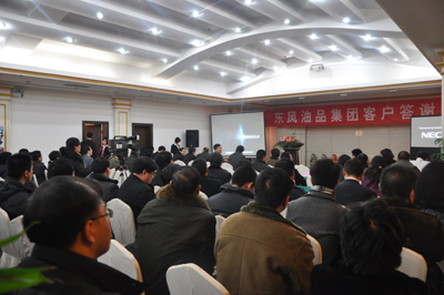 ——东风油品集团答谢会于今日在许昌隆重举办 据悉,东风油品集团为答谢各合作伙伴、供应商、加盟商及全体员工,于2011年1月18日在河南许昌举办了隆重的“东风油品集团答谢会”。《代理商—润滑油版》杂志社、中国润滑油代理商网对会议全程进行了采访报道。