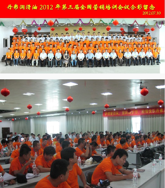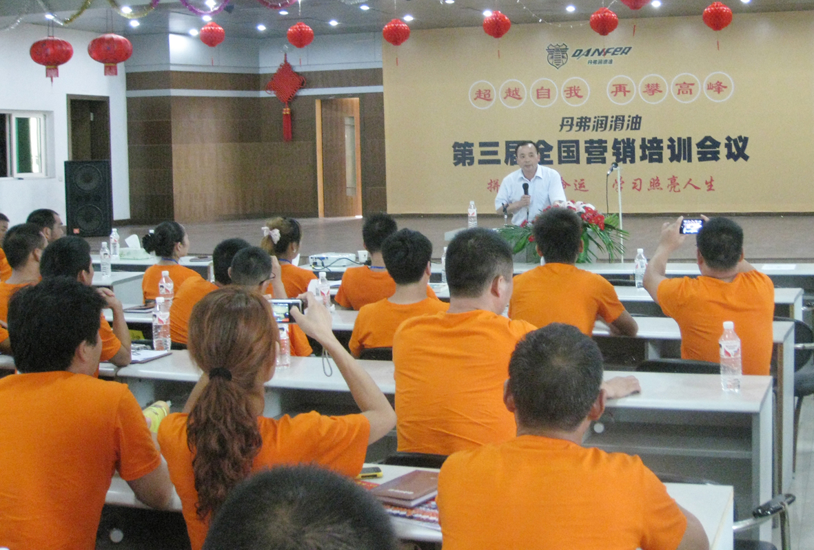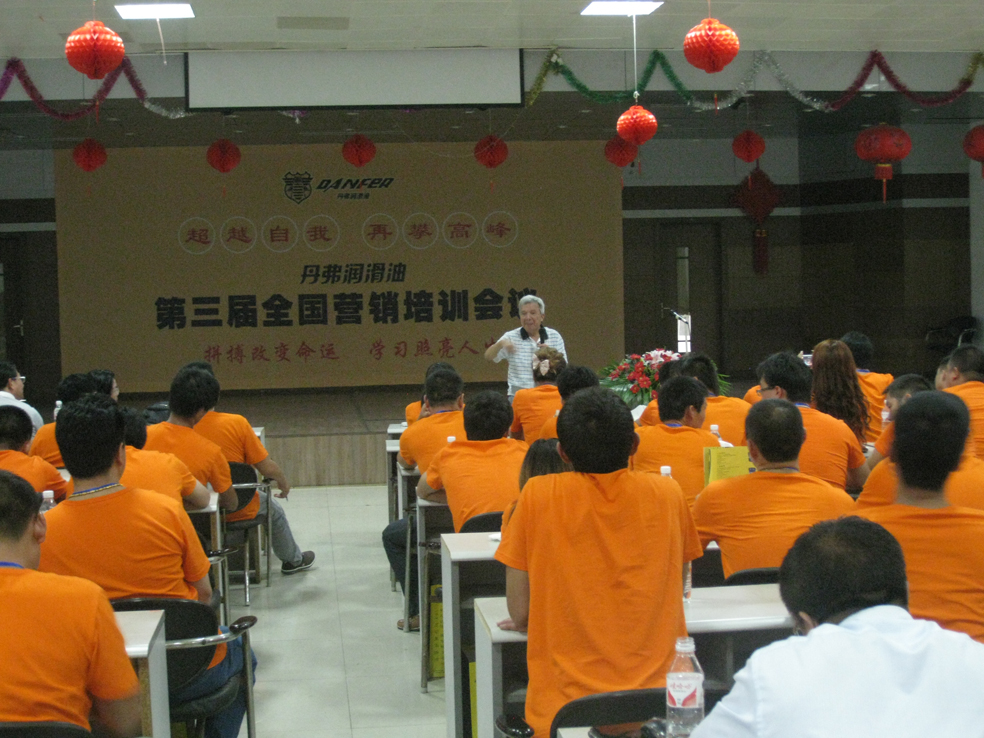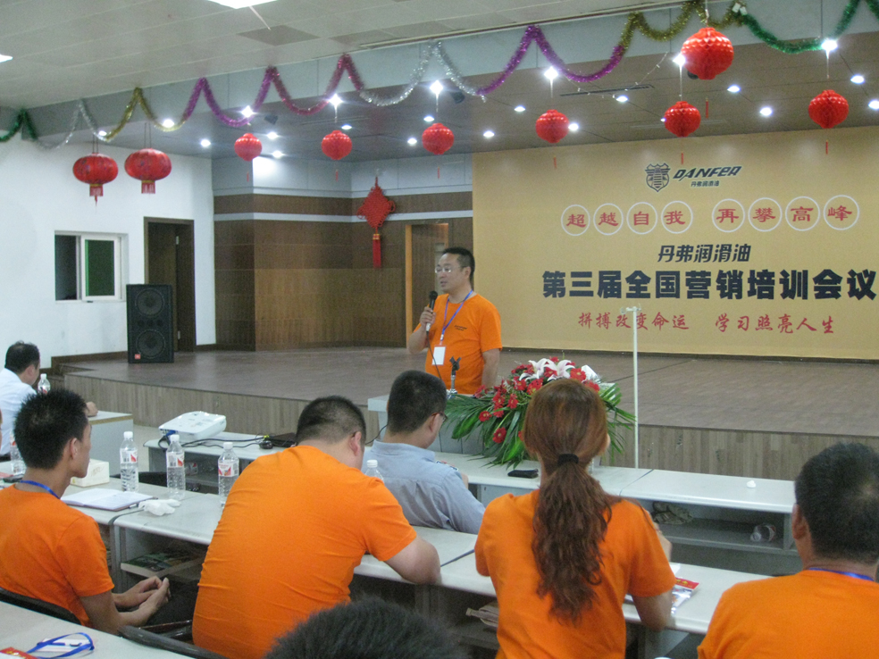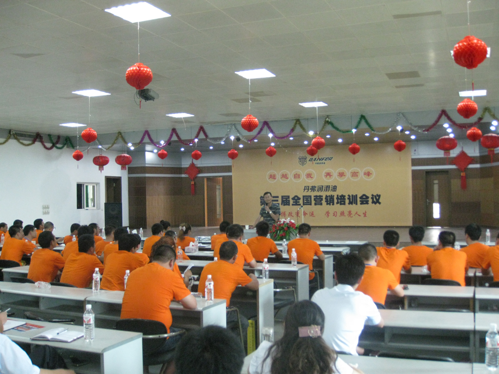 2012年7月10日,为期二天的丹弗润滑油第三届全国营销培训会议在王力集团五楼多功能厅开幕,来自全国市场100多家经销商及销售人员参加了本次会议。本次会议主要旨在提升全国营销网络销售团队技能、专业知识、品牌意识、实践经验等方面的培训和交流。会议由丹弗润滑油大区经理李建东主持,激昂的背景音乐中,全体起立,振臂高呼团队口号会议正式开始。