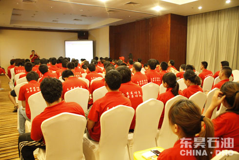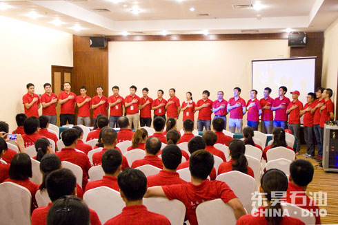 会议开场,每一位拓展队长宣读了一段代表自己队伍精神的语录,与在场的各位分享了团队拓展精神。此外,22个拓展小组的队长和监督员就本次市场拓展的订单真实性以及队内拓展情况进行了庄严的宣誓,每个小组的拓展队员纷纷上台,就本次华北市场拓展经验以及市场情况做了分享和交流,场下队员认真记录,汲取拓展成功经验,为今后更好地拓展油品市场做准备。闵春光董事长上台与各位分享了此次拓展的感悟,他指出:东昊在中国润滑油市场的这场战役,需要持之以恒的定力,更需要团队协作、一心向前的凝聚力,唯有齐心携手才能走向辉煌!